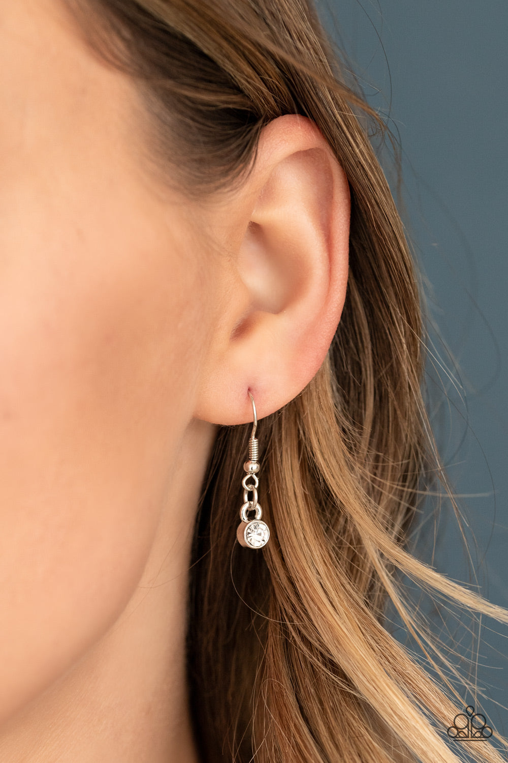 An oversized white gem attaches to a thick silver hoop encrusted in row after row of dazzling white rhinestones. Shimmery silver chains stream from the bottom of the stacked pendant at the bottom of a lengthened flat silver chain, creating a sassy tassel. Features an adjustable clasp closure.