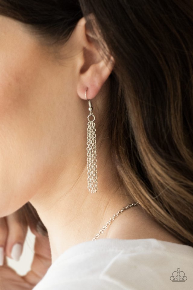 Swinging from a lengthened silver chain, a faceted brown bead gives way to a shimmery silver tassel for a whimsical look. Features an adjustable clasp closure.